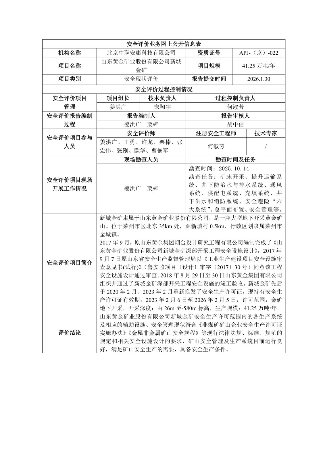 山东黄金矿业股份有限公司新城金矿安全现状评价